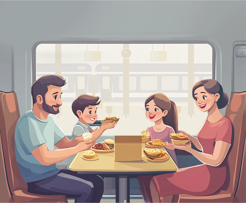 Make your train journey tastier with Confirmtkt! You can order from FSSAI-approved restaurants and enjoy freshly prepared, delicious, and hygienic food delivered directly to your seat at all major stations across India. Sit back, relax, and let us bring your favourite meals right to you!